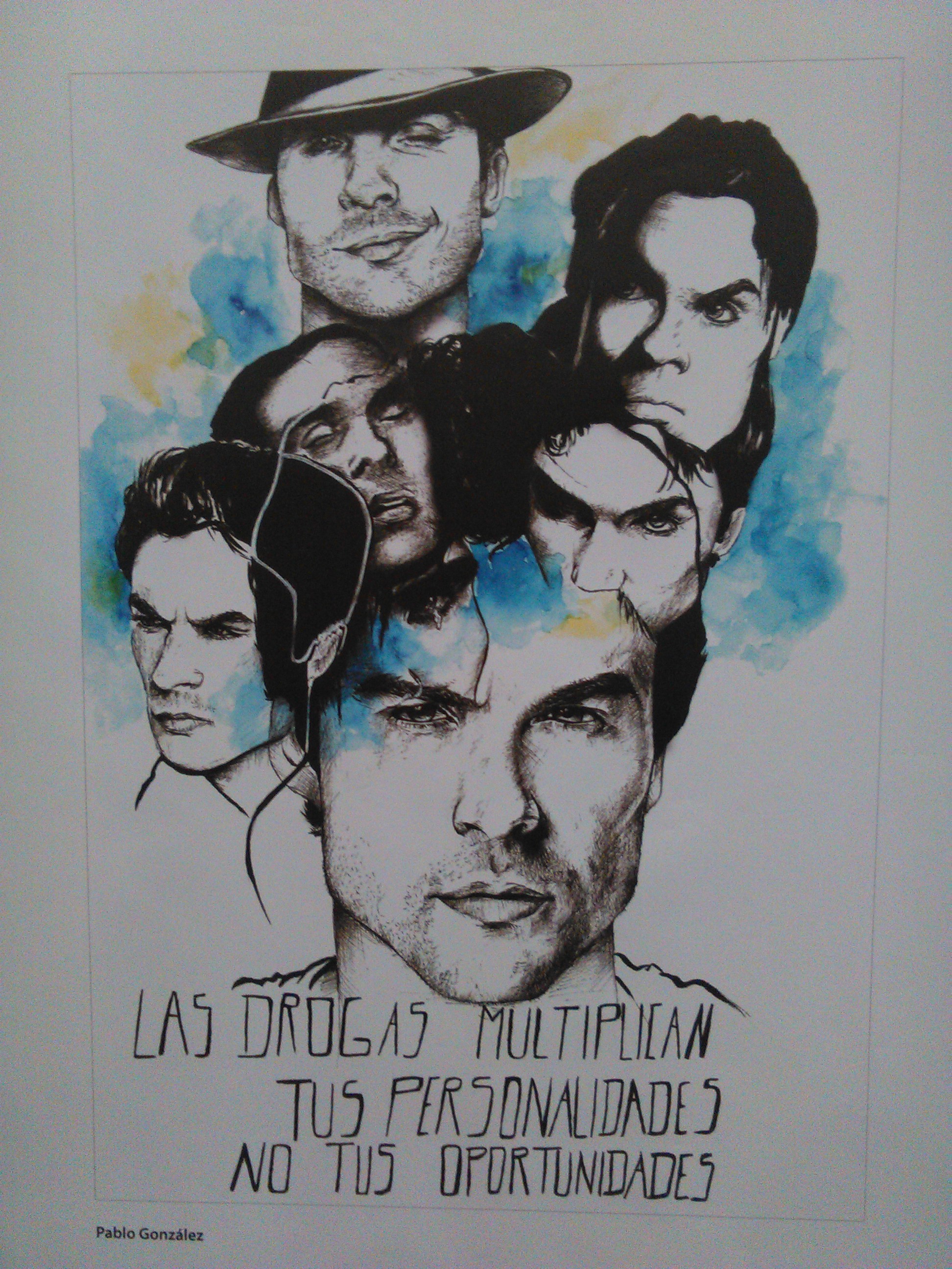 Hace un tiempo asistí a la inauguración de una exposición organizada por la Academia de arte enclave (en Madrid). Las obras que conformaban la exhibición habían sido realizadas por alumnos de la propia academia. Había mucha gente agrupada delante de las piezas y tenías que andar esperando a que te llegara el momento de enfrentarte a ellas cara a cara. Cuando me llegó el turno de mirar a los ojos a la figura de “Dead Colour” (Realizada por Pablo González) algo en mi saltó. Fui recorriendo las líneas negras, gruesas, de la figura de esa mujer que vestía su rostro con una especie de aterradora calavera. Pero no, no era el trazo lo que conquistaba a los que allí estábamos. Fue entonces cuando empecé a buscar qué tenía de especial, qué tenía de diferente, y allí apareció. Lo primero que ves de esa ilustración es esa mirada intimidatoria, altiva, orgullosa, lo segundo es el trazado de huesos que dibuja su cuello y su cara, pero lo que permanece, lo que culmina la obra es el contraste con el pájaro de color que con una vital tranquilidad permanece posado sobre su hombro. Después de pasar varios minutos ante la obra, cedí el paso a la persona que esperaba detrás de mí impaciente por analizar con detalle lo que allí se nos presentaba.