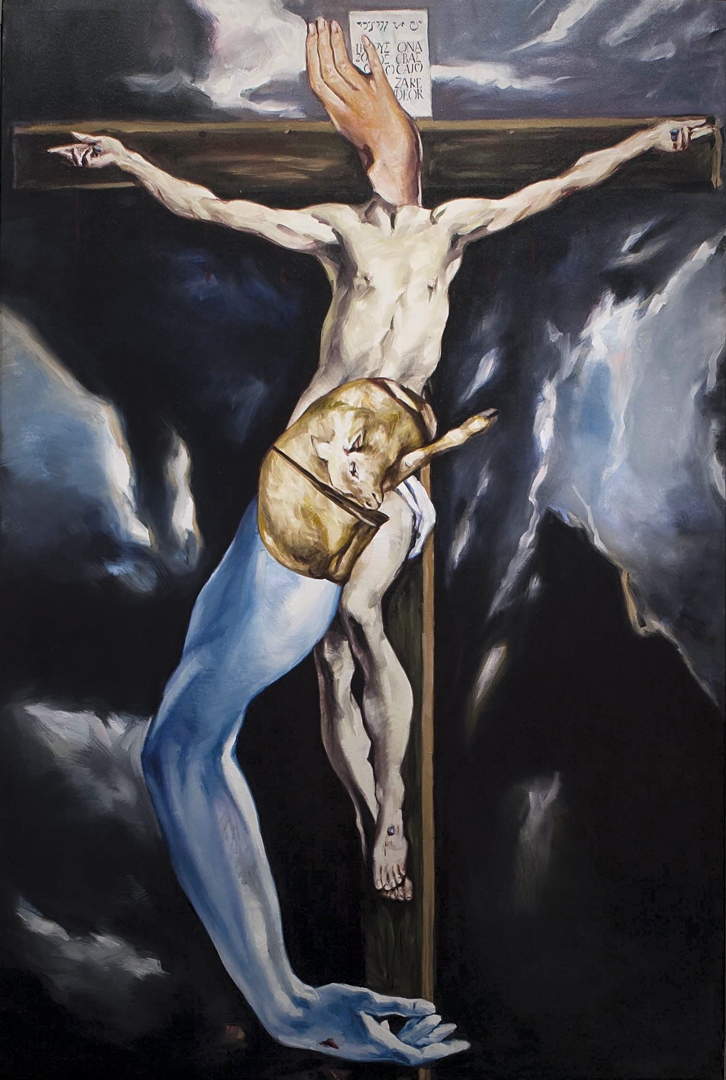 La devoción por el Greco también llevó al pintor Jorge Galindo a crear una serie de cincuenta obras titulada El Griego revisitado en Borox, cuyas dos últimas forman parte de la exposición. En ellas, los brazos y manos de las figuras grequianas cambian de lugar, sorprendiendo por sus posiciones.