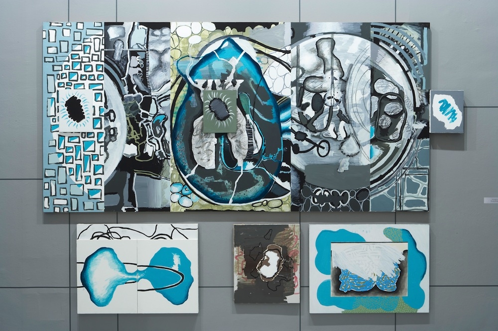 Un espacio igualmente insinuado por Cristina Iglesias. Su obra Sin título (Berlín II) está compuesta por un tapiz y un cristal azul, evocación del agua. Iglesias, que también trabajó en el