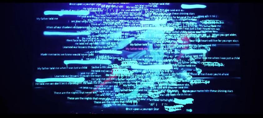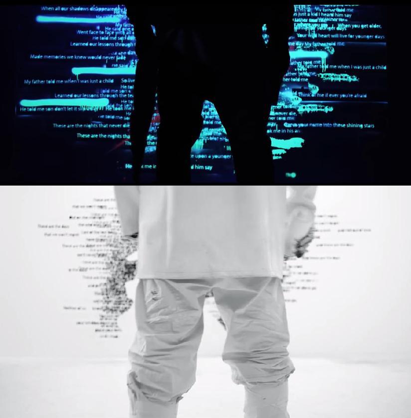 En ambos la escena final, comienza con un plano de espaldas ascendente de ‘iNO’, que orgulloso observa el resultado de su trabajo: un fabuloso retrato de Avicii.