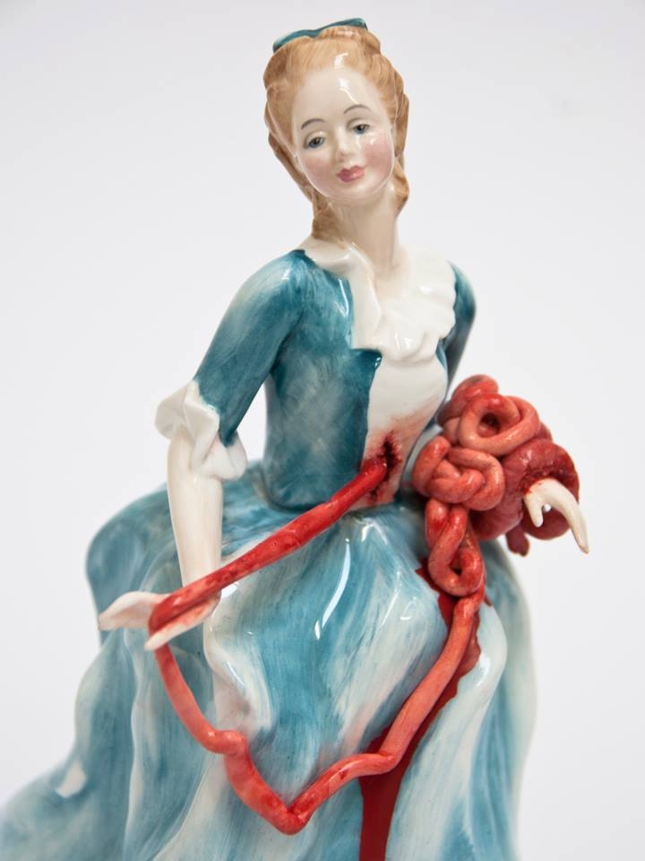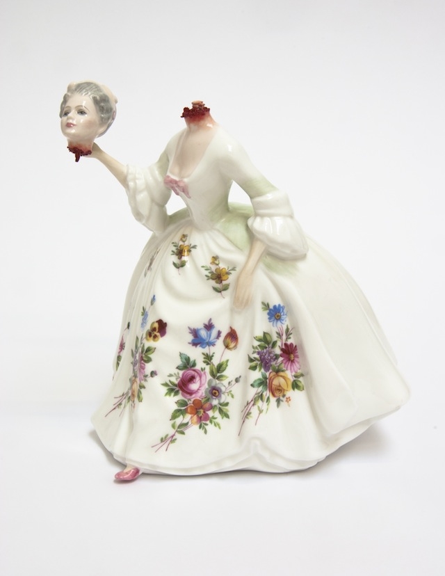 Esta artista toma algo tan kitsch como son las figuritas de porcelana que cualquiera puede encontrar en mercadillos y en el recibidor o el mueble del salón de casa, y lo convierte en algo totalmente moderno dentro de la cultura más pop y contemporánea, añadiéndoles tatuajes estilo marinero (algo por otro lado muy pin up), nuevos ropajes o incluso decapitándolas y mutilándolas. Sí, esto ultimo es muy gore, pero parece ser que es lo que le gusta a la gente.