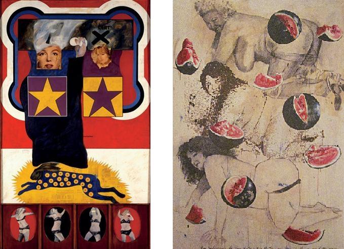 1. Peter Phillips, Sólo para hombres. Protagonizada por MM y BB, 1961. Colección CAM-Fundaçao Calouste Gulbenkian, Lisboa. 2.Fernando Álamo, Las Tentaciones de San Antonio Pérez Martín, 2002.