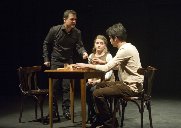 Los aplausos son necesarios para todos ellos. ¡Cómo no vamos a aplaudir cuando terminan una escena entre hermanos de lo más conmovedora o cuando se nos ha movido el cuerpo acompañando su versión de Mamma Mia! Todo gira alrededor de la música; El disco de cristal es una de esas obras de teatro que no sabe respirar sin las canciones, que no puede disfrutarse igual sin la voz a medio temple llorando un Ayúdame y te habré ayudado. La historia de este Tomy Tomás, que sólo resulta ser la excusa para contarnos otras, es la historia de tres vidas musicales encerradas en unas estrechas paredes que les aprisionan tanto como sus propios miedos.