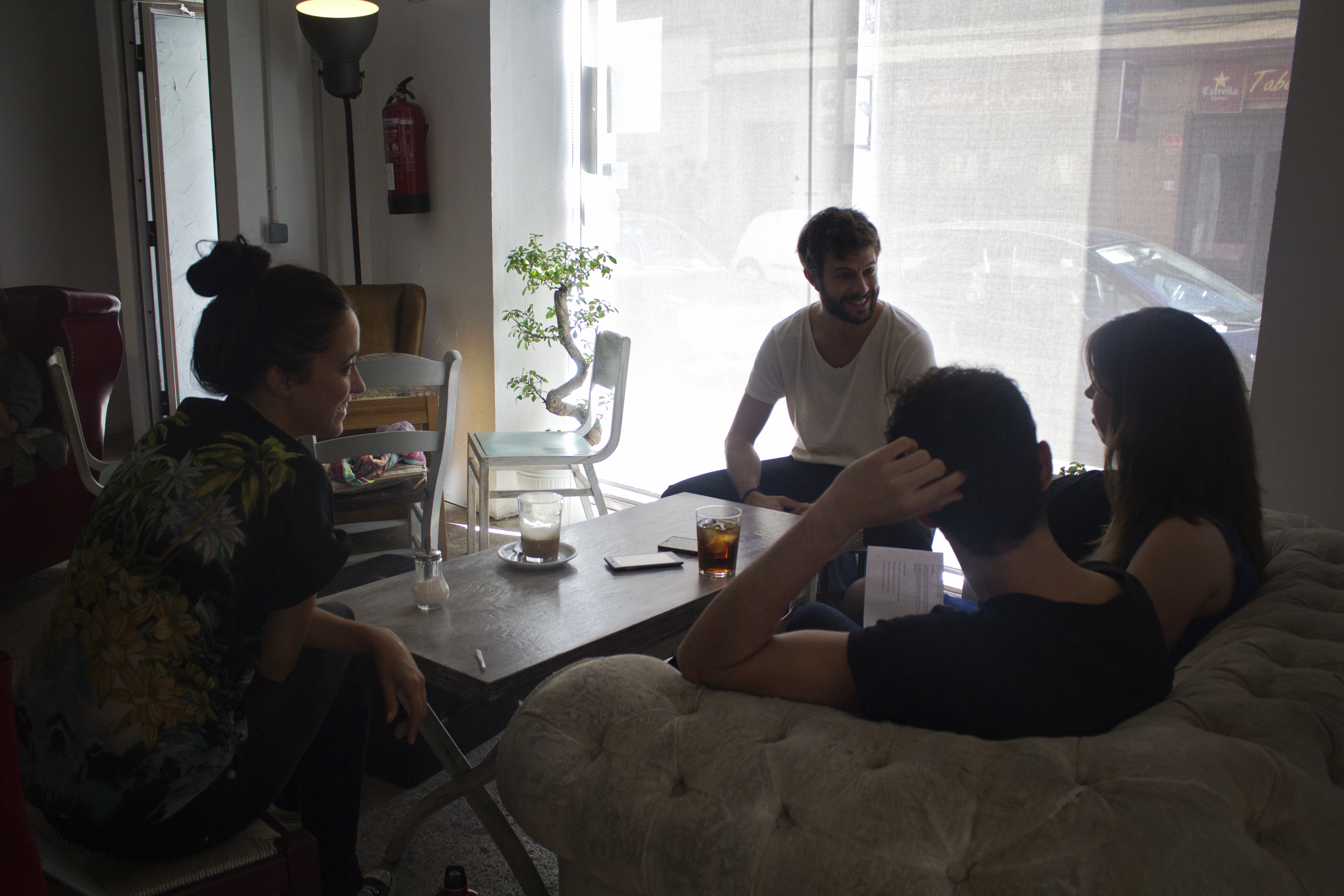 Nos quedó tiempo para hablar con cada uno sobre sus trabajos y expectativas de futuro. Sara Martínez, la única chica en el reparto de Como si no hubiera un mañana, nos habla del trabajo de las actrices: “Tienes una etapa en la que haces papeles de jóvenes y otra papeles de madre, y la diferencia es que en los hombres es más extensa. Tampoco creo que haya mucha diferencia a nivel de trabajo. Sí que es verdad que, en general, hay más papeles para hombres y menos hombres que se dedican a esto”.