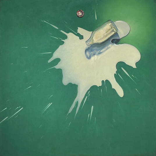Su estudio es su refugio; allí Cobley pasa los días entre pinturas, escondido del mundo. En él cualquier objeto es susceptible de ser sujeto, y sus naturas están más vivas que muertas. «La cuestión de qué pintar- afirma Cobley– ya no es un problema; la única pregunta es cómo hacer una pintura interesante con la materia frente a mí. Mi imaginación tiene vía libre y todas las cosas parecen posibles«. Un enfoque con el que este artista busca impregnar de drama y misterio sus creaciones, insertándolas en una secuencia narrativa. Unas sábanas arrugadas insinuando el rastro del cuerpo que las ha ocupado o una botella de leche derramada son apenas un pestañeo que encierra una historia ante y tras de sí y que el espectador debe identificar.