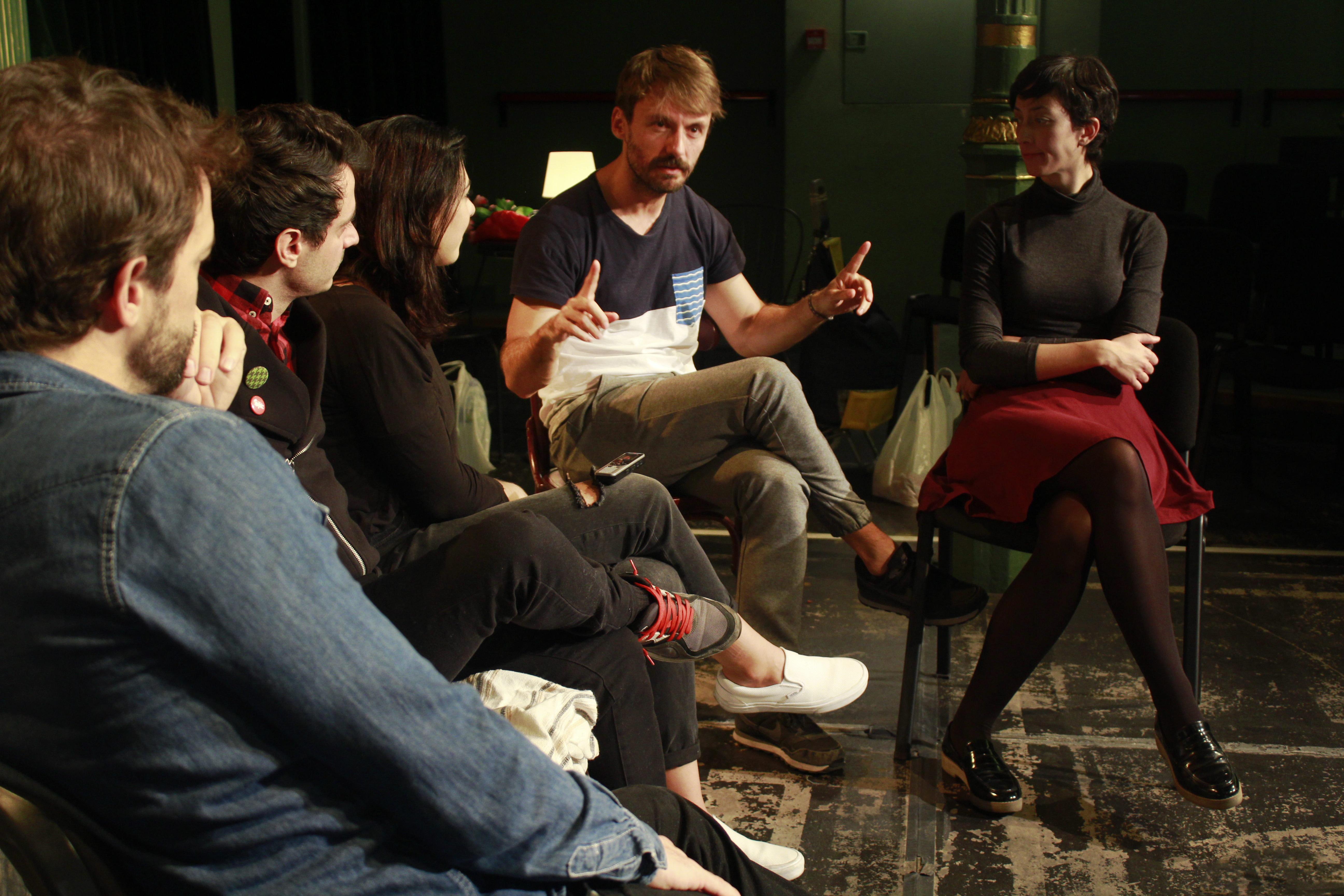Carrasco: Me apetecía, a nivel de dramaturgia, establecer un punto de vista. Es verdad que los problemas de madurez se tienen seas catedrático o cajero, porque es una realidad, y por eso creo que la gente empatiza, pero no me apetecía intelectualizar demasiado; quería hablar en general de la crisis, de la crisis personal, de cómo se sienten estos personajes desde la realidad que ellos están contando para que fuesen descubriendo su depresión, su propia crisis.