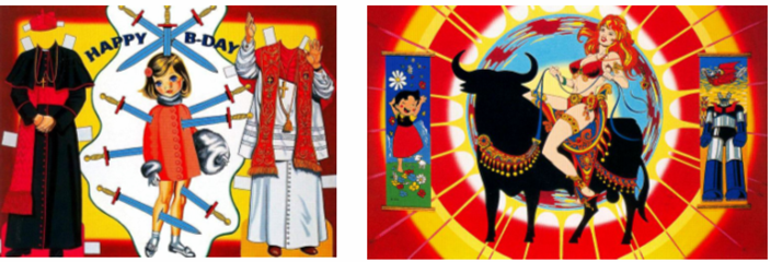 Desde 1989 hasta 2002, recogieron el testigo de sus antecesores y pusieron su talento artístico al servicio de coloridos e irónicos collages de imágenes provenientes de la “baja” cultura. Aunque muchos de los materiales recuerdan a los tebeos y anuncios de los sesenta y setenta, cuando ambas artistas se criaron, no podemos olvidar que nos encontramos en la España de la post-Transición y la post-Movida, en medio de la reconversión neoliberal del sistema económico y los modos de vida. En este contexto, Cuqui y Cari vieron con claridad su misión. Aunque su obra ha sido vista por algunos como un “simple” pastiche de iconos culturales, en ella existe una clara constante: denunciar a golpe de yuxtaposiciones pop la opresión que los medios y el sistema ejercían (y ejercen) sobre la mujer. Para ello, acudían principalmente a los recuerdos de su infancia, donde crecieron rodeadas del estereotipo favorito del nacionalcatolicismo: la buena y casta ama de casa. Esto lo enfrentaban con el otro modelo femenino por excelencia: el objeto sexual. Aunque las imágenes tuvieran un sabor añejo, su influencia llegaba hasta los noventa, cuando el país vivía una modernización estandarizada y un nuevo impulso de los medios de masas que perpetuaban esta esquizofrénica mirada de dominación y deseo sobre las mujeres. De nuevo, un (neo) pop con vocación social, aunque de distinto signo.