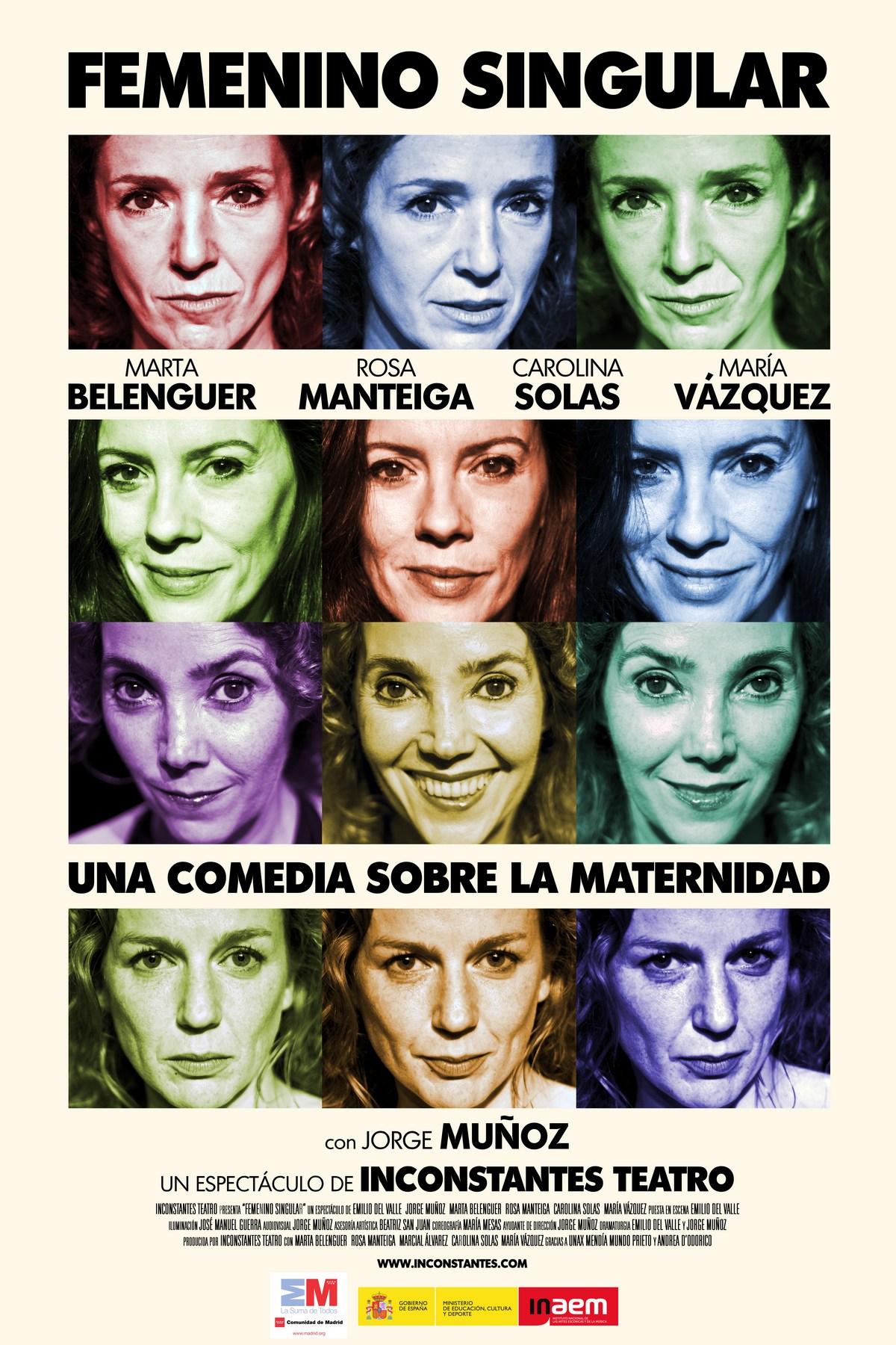 El Día Internacional de la Mujer viene con fuerza este año. En el terreno artístico, muchas son las actividades programadas para luchar por la igualdad y la autoría de muchísimas voces femeninazas. Marta Berenguer, Rosa Mantenga, Carolina Solas y Marías Vázquez son ejemplos que reflexionan a través del humor sobre un tema muy debatido actualmente; la maternidad. Lo hacen a través de Femenino singular de (In)Constantes teatro, un espectáculo que se estrenaba en Madrid en la Sala Cuarta Pared el pasado año 2014 y que se encarga de dirigir Emilio del Valle.