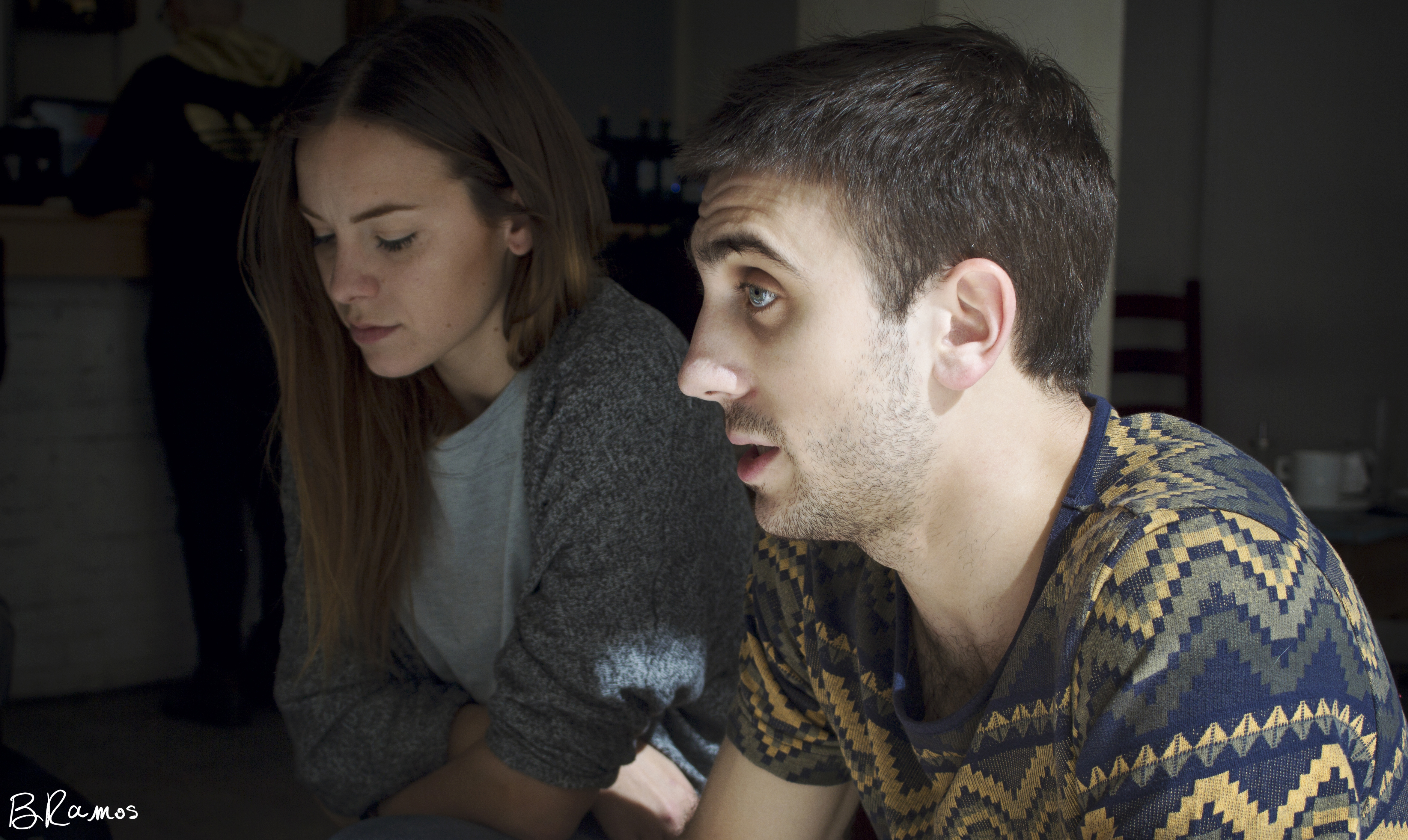David: Los ensayos se han dilatado en el tiempo porque era un texto un poco peculiar ya que no tiene acotaciones. Las acotaciones te condicionan. Lo primero que pensé es que lo dirigiese otra persona pero nos ahorraríamos tiempo si me encargaba yo, puesto que entendía mejor lo que había escrito. Empezamos investigando sobre el texto, viendo dónde nos llevaba para que la historia la estuviéramos contando los tres. Fue un proceso de investigación de unos cuatro o cinco meses, en intervalos, mientras hacíamos otras cosas laborales, y en diciembre, decidimos tenerlo todo montado para estar preparados para la sala que decidiera darnos una oportunidad. A partir de ahí, han sido dos meses de ensayos más fuertes, como un montaje profesional.