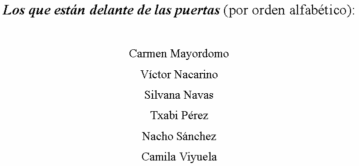 Con la producción de SieTeatro Producciones, que forman Antonio Cabrera, Tania Tajadura y Pablo Canosales, y con un elenco de actores que supo distribuirse las diferentes historias de manera notable y original, destacando sin duda el trabajo sobre el escenario de Nacho Sánchez, si las oportunidades apropiadas llegan para el proyecto ¿Qué se esconde tras la puerta?, no dudamos de que no se dejará de hablar de ello y de todos ellos, no por ser otra idea teatral pidiendo auxilio por el asfixiante panorama actual sino por la responsabilidad artística que saben ofrecer llamando a la puerta de la cultura y demostrando que hay que dar oportunidades a la gente que habla bien alto y sin miedo del teatro.