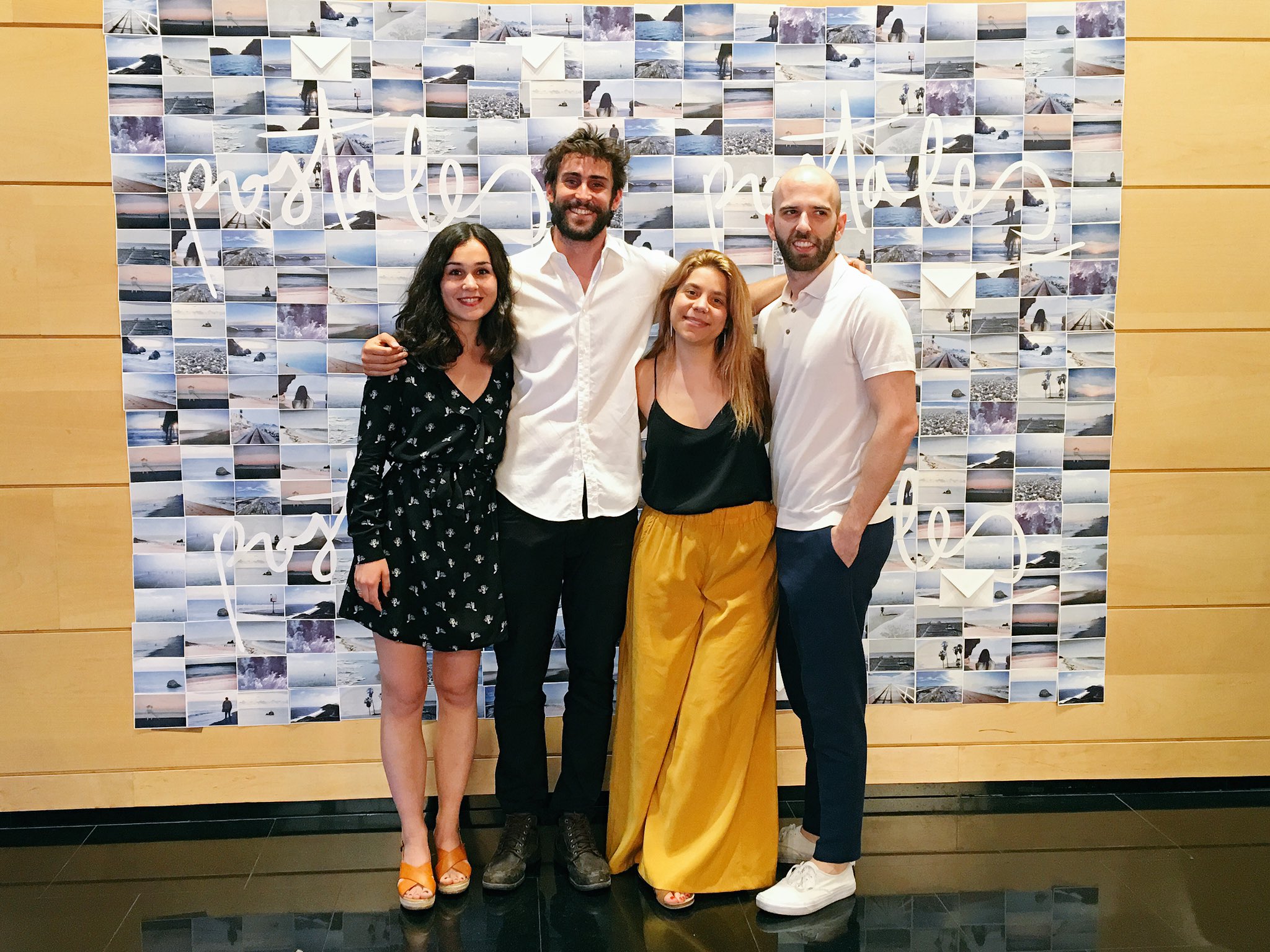 Parte de el equipo de «Postales» en la presentación en la Academia de Cine. Fotografía tomada del Twitter de La breve historia.