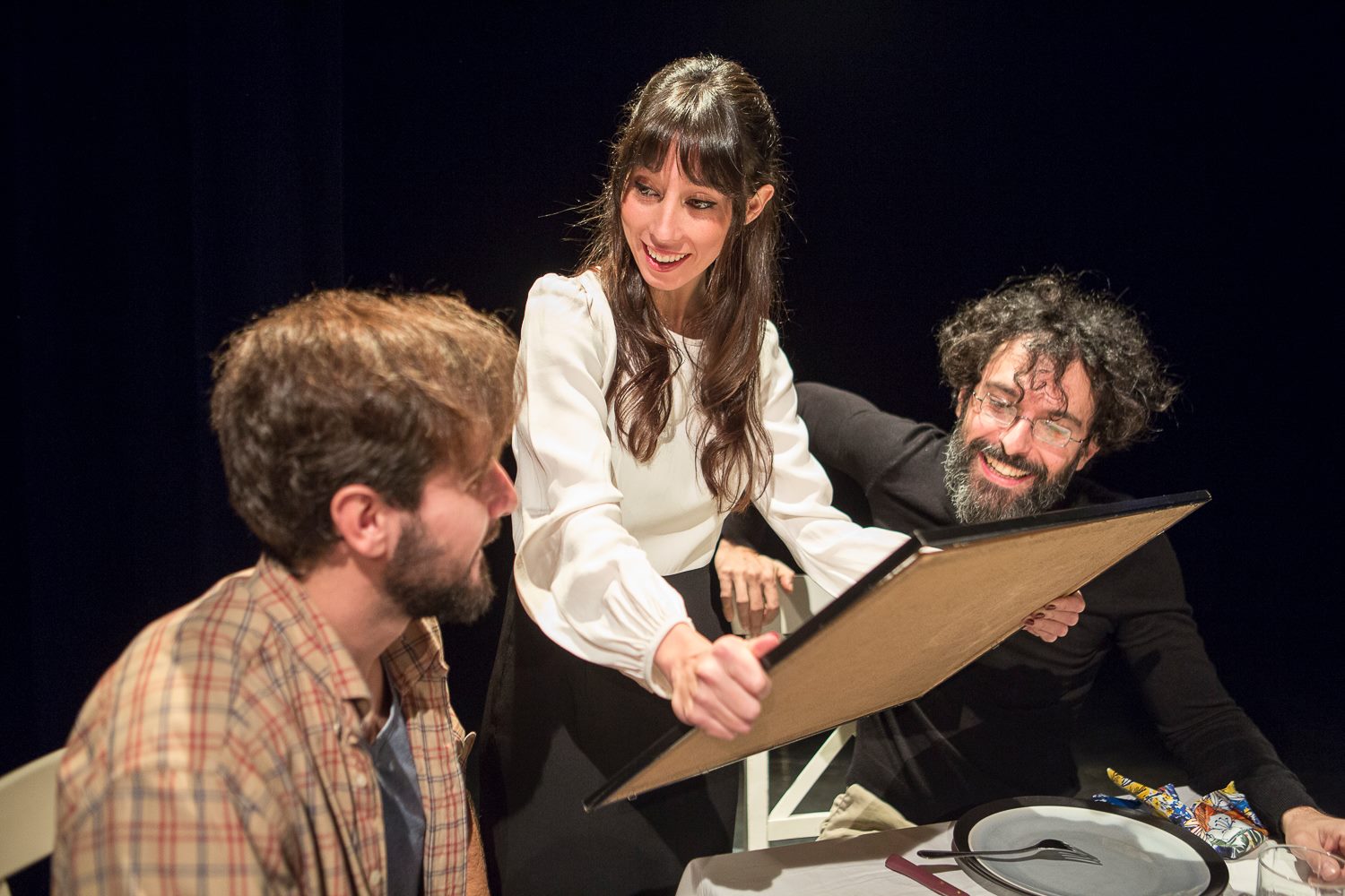 Con la mesa puesta y con la excusa de un encuentro fortuito en una sala de cine comienza esta historia en la que Isabel Dugo, Gustavo Galindo, Fernando Gómez y la misma dramaturga de la obra son el grupo de amigos que se reúnen inocentemente una noche en la que la lluvia es constante en la calle y también en el interior en el que parecen relajarse en una encantadora velada.