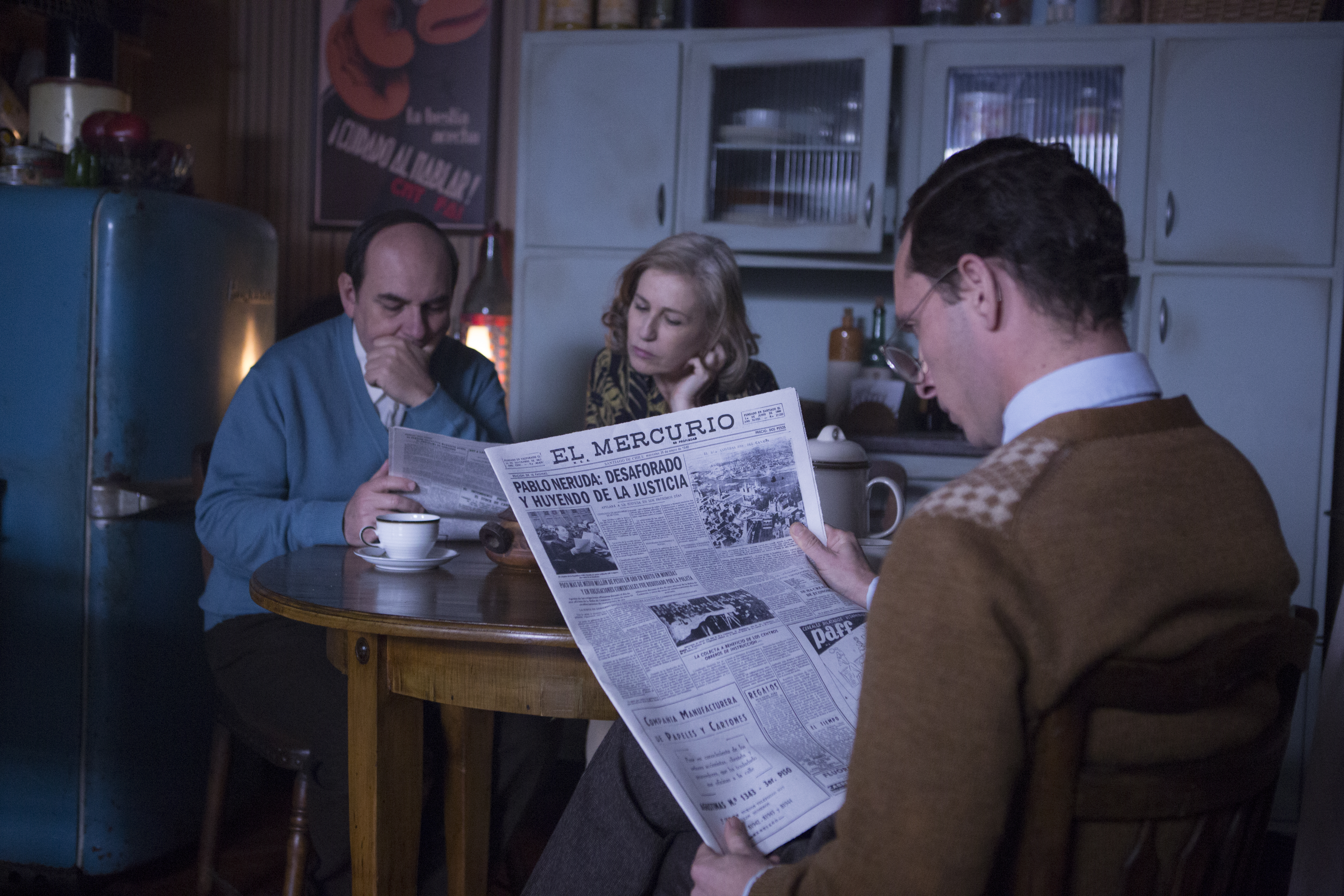 Neruda es la sexta película del cineasta chileno y cuenta con la producción de Fernanda del Nido (Setembro Cine, España), Juan de Dios Larraín (Fabula, Chile), Peter Danner y Renan Artukmac (Funny Balloons. FRANCIA), Alejandro Zito, Juan Pablo García, Ignacio Rey, Gastón Rothschild (AZ Films, Argentina), en coproducción con Telefe y Reborn, en asociación con Participant Media y la colaboración de Elipsis y con la participación de RTVE y Movistar+. Se presentará en la sección Perlas del Festival Internacional de Cine de San Sebastián, en el que García Bernal recibirá el Primer Premio Jaeguer – LeCoultre al Cine Latino. Además, Larraín acaba de dirigir su primer largometraje de habla inglesa, Jackie, protagonizado por Natalie Portman.