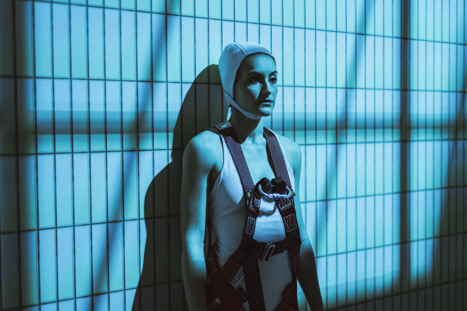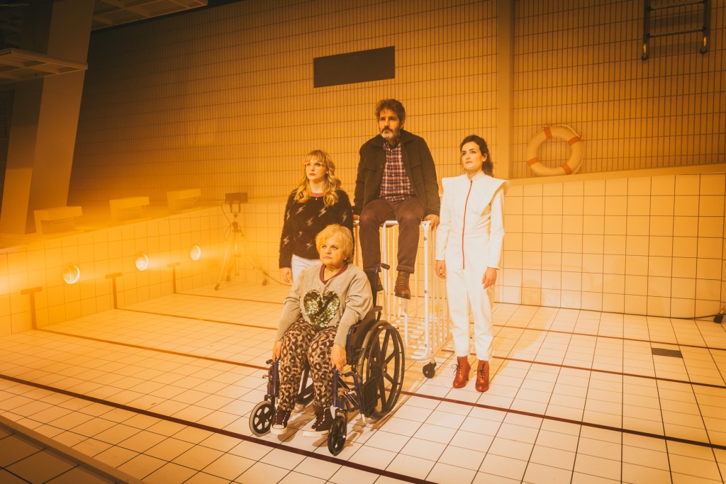 La fantasía sobre la posibilidad de desaparecer, el significado de la heroicidad o la cuestión básica sobre qué es vivir son la base de una obra enmarcada en el espacio vacío de una piscina creada por Monica Boromello que sirve de continente a una historia llena de peligros y de diferentes alturas desde las que lanzarse. Mano a mano, destacan también los trabajos de David Picazo en iluminación, José Pablo Polo con música palpitante y Paola de Diego en un vestuario que se disfruta a rabiar en el juego escénico planteado. Porque, aunque la parte más audiovisual falle y no aporte contexto (ni visibilidad, puesto que los vídeos en directo proyectados no se alcanzan a ver bien y parecen distraer), el espacio y la temporalidad creados en conjunto sumergen a espectadoras y espectadores en un interesante abismo.