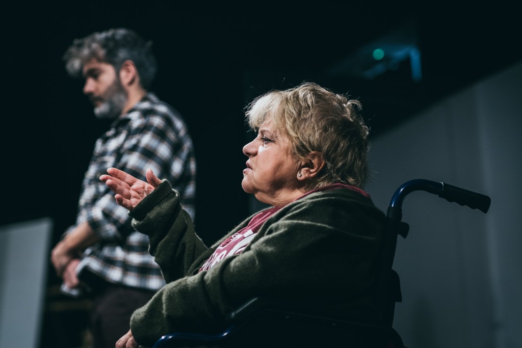 El texto, ganador del Premio de Teatro para Autores Noveles «Calderón de la Barca» 2019, firmado y dirigido por Eva Mira resulta toda una bofetada cargada de amor y de impulso. Su atrevimiento a bucear sobre todas estas cuestiones quizás tenga que ver con lo que entiende por dirigir; escribir la obra por segunda vez. De esta manera, al igual que ella se vuelve a mirar en sus palabras, así los personajes apelan al patio de butacas, anestesiado como sociedad, por la incapacidad de hacer latir las palabras en un diálogo abierto, y abrumado por la cultura del pensamiento positivo, en la que se nos exige estar constantemente presente en todos lados y a cualquier nivel como sinónimo de novedad.