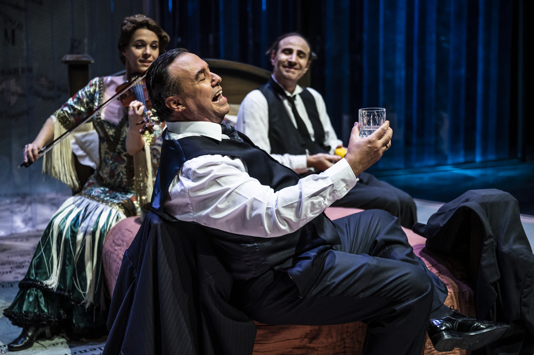 Todo esto se sostiene gracias al magnífico trabajo de todo el elenco actoral. Es una obra coral en la que cada uno tiene su espacio para brillar con luz propia. Félix Martín encarna a Manuel, mientras que Carlos Martín a Antonio (quién también es el director del montaje). Los dos igual de excelentes en escena, saben dar con la clave de unos personajes complejos y de gran peso que se ven acompañados, en un momento determinado, por la presencia de Valle Inclán y Rubén Darío. Alba Gallego personifica a ellas, a todas las mujeres que estuvieron presentes en la vida de los escritores, desde su ya nombrada madre hasta Leonor. A pesar de que su papel es menos rotundo, son destacables sus muchos cambios de registro debido a que da vida hasta 8 personajes e, incluso, su interpretación musical.