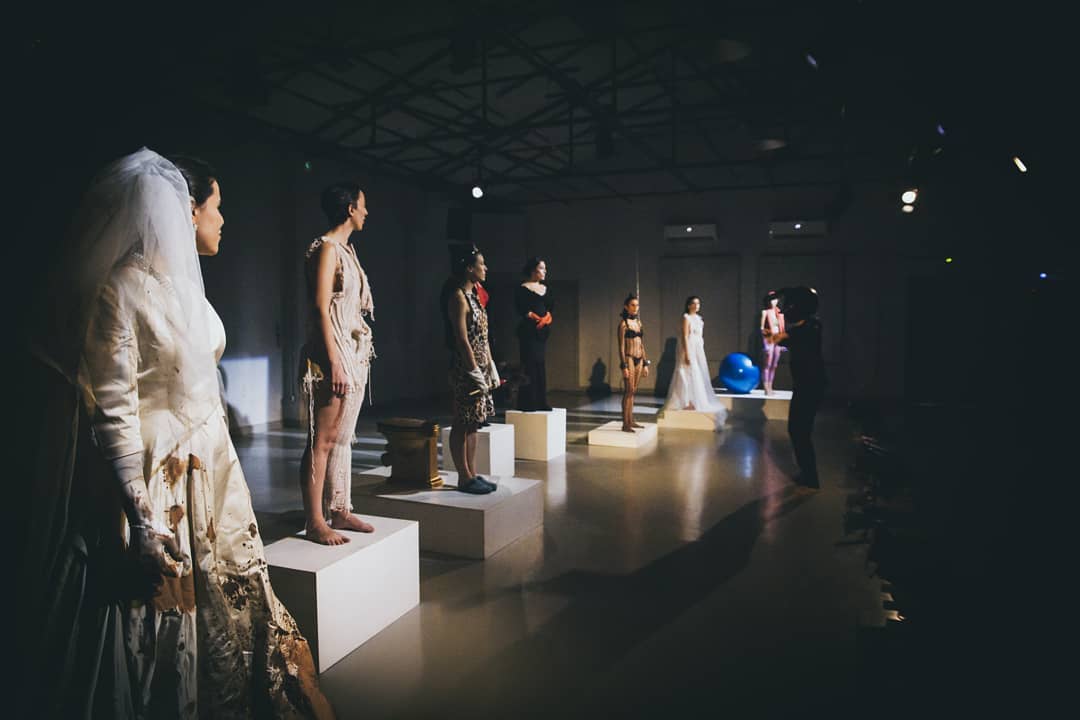 Esta creación se parece a la sala de una galería de arte (cualquiera que se nos aparezca en la mente) pero habiendo descartado las viejas tradiciones de un museo, pues ya solo la iluminación de Antiel Jiménez nos sirve para dejar de observar el camino y fijarnos en las formas. Paseamos la mirada entre las figuras y estas despiertan para encontrarnos.