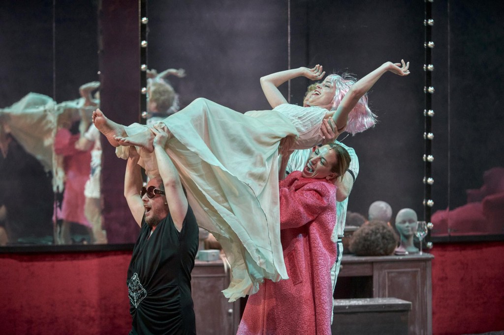 Una larga lista de nombres figuran en el equipo que no se sube al escenario, como Sandra Vicente, quien con su trabajo en el espacio sonoro envuelve la función es un disfrute constante, Rafa Lladó en la escenografía, coninvitaciones por doquier a entrar en esta fantasía, y Javier Monzón en las coreografías, danzas que forman una composición de movimientos que se acomoda con gusto al tono de farsa y que crean una identidad concreta hecha a medida para cada personaje.