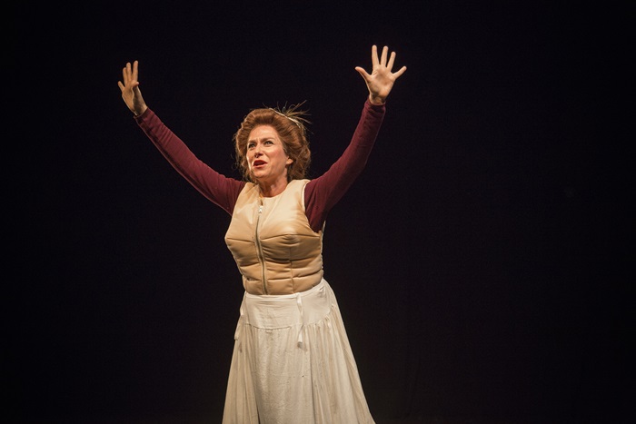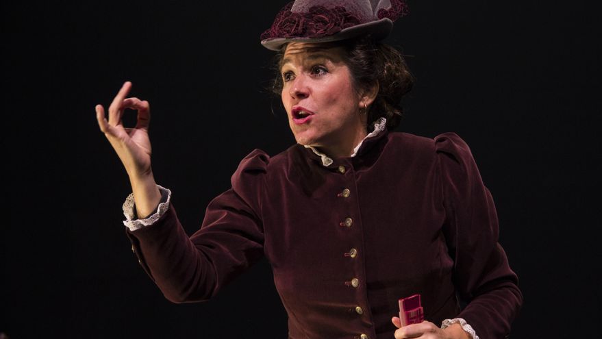En la escena y en solitario, como se debió de sentir la autora de La tribuna, Pilar Gómez borda con letras de oro una interpretación a la que no se le olvida un detalle. En su trabajo no falta nada y todo lo lleva a cabo con maestría. Desde el acento gallego (es algo bastante novedoso que esto se cuide en la práctica actoral y como ejemplo pueden servir las múltiples referencias a Bécquer en las que el acento sevillano del autor brilla por su ausencia, siendo sustituido por un castellano propio de Soria u otra zona de Castilla) hasta la búsqueda de la participación silenciosa del espectador llevándoles a la escena en todo momento.