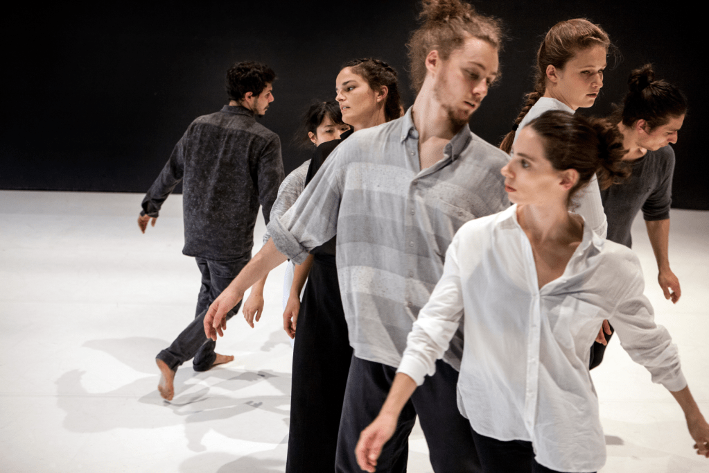 Made of space. El coreógrafo libanés Guy Nader y la creadora barcelonesa Maria Campos revelan su proceso de investigación sobre el espacio-tiempo en el que la fuerza de la gravedad es su máxima tentación para desafiar las leyes de la naturaleza. La danza constituye su empeño conjunto por dibujar una aurora boreal, mezclando olas de movimiento y sensibilidades varias que expanden el espacio blanco y extensible, presentado como escenografía casi flotante, hasta el infinito. Este es el cierre de la trilogía compuesta por Time Takes The Time Time Takes (2015) y Set of Sets (2018) en el que los cuerpos de 7 bailarines vibran en una compasión enigmática que conforma también una experiencia sensorial y emocional gracias a la banda sonora en directo del músico Miguel Marín y el percusionista Daniel Munárriz. Alex De Vries, Anamaria Klajnšček, Héctor Plaza, Maria Campos, Maxime Smeets, Noé Ferey y Patricia Hastewell parecen patinar sobre el espacio. Otras veces, soñarse entre miradas. Pero en definitiva, un espectáculo tan bello de ver como de sentir.