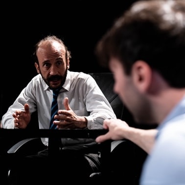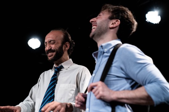 Dafnis: La comedia está en que hay poca esperanza en estos personajes, sobre todo del mío, que llega desde fuera. Para mí, las comedias son más divertidas cuando los personajes están desesperados porque te ríes del patetismo de esa gente. Y por eso, cuanto más en serio hagas una comedia, más divertida es. Y veo esta función muy divertida por lo poco esperanzadora que es.