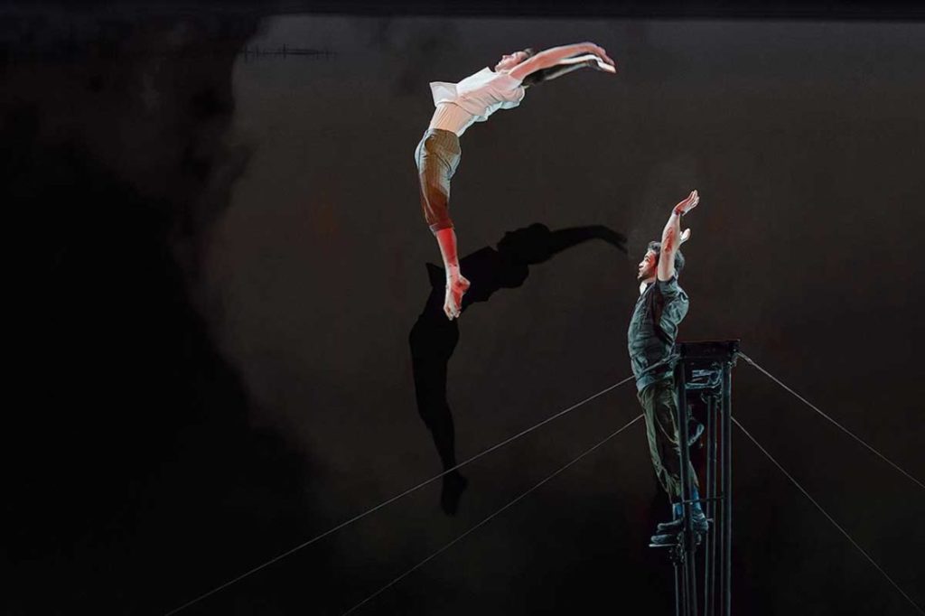 Y si hay un número que conquista ovaciones y cosquilleo en los asientos son los saltos al vacío últimos que marcan un punto y final apoteósico y magnífico. Esta última escena de a dos – con Louis Joyal y Samuel Renaud en lo más alto – se introduce con un mensaje que explica que todos y todas crecemos con historias, pero hay algunas que se detienen. Historias para las que no nos preparan. Este pequeño relato como desenlace en el que dos acróbatas dejan soltar, se abrazan y se dicen adiós con el cuerpo y la mirada es simplemente inspirador. Mano a mano, tiempo a tiempo.