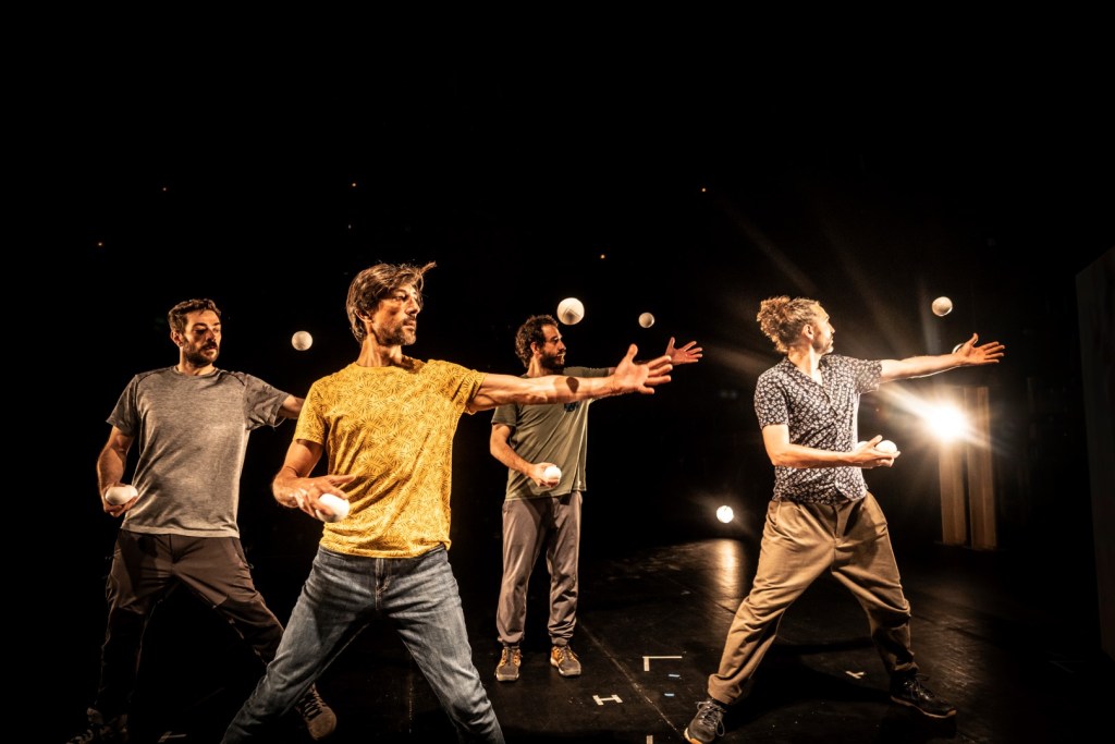La dirección de Jorge Silvestre motiva a encontrarnos y a reflejarnos en esta obra de circo contemporáneo tan emocionante como sensible y observadora de nuestra realidad más actual. Además, la música creada para este espectáculo es un trabajo mimado a la par que espectacular de Vaz Oliver, envolviendo también y cuidando la forma de mirarse y de jugar de estos malabaristas de debilidades y fortalezas.