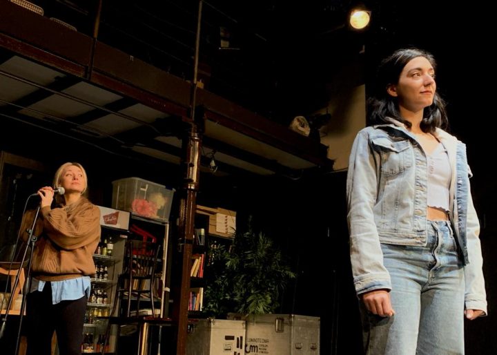 En la dirección de Beatriz Jaén, he creído ver una labor minuciosa de observación de estos cuerpos que se van encontrando y arrasando. Junto a Javier L. Patiño, en audiovisuales y ayudantía de dirección, apareceun trabajado muy cuidado en ejecución y generoso en no ofrecer fronteras en lo que se erige sobre el escenario y se traslada a las butacas. El argumento aparece fragmentado en varias capas: la historia que ve el público, la historia que oímos narrada y miramos representada, aquella que experimentan los personajes junto a la que no llega a ocurrir, otra que se funde con la leyenda de lo que pasó y de cómo se contaría en voz alta, otra que está escrita sobre el papel… Cada recoveco parece inundar el siguiente y la sutil forma cinéfila que va asentándose pasados los minutos es síntoma de que el disparo ha acertado y las heridas son compartidas. El bosque, las montañas o la primavera se abren y nos dejan ver esa luna del cazador y todo el paisaje del que recoge luz.