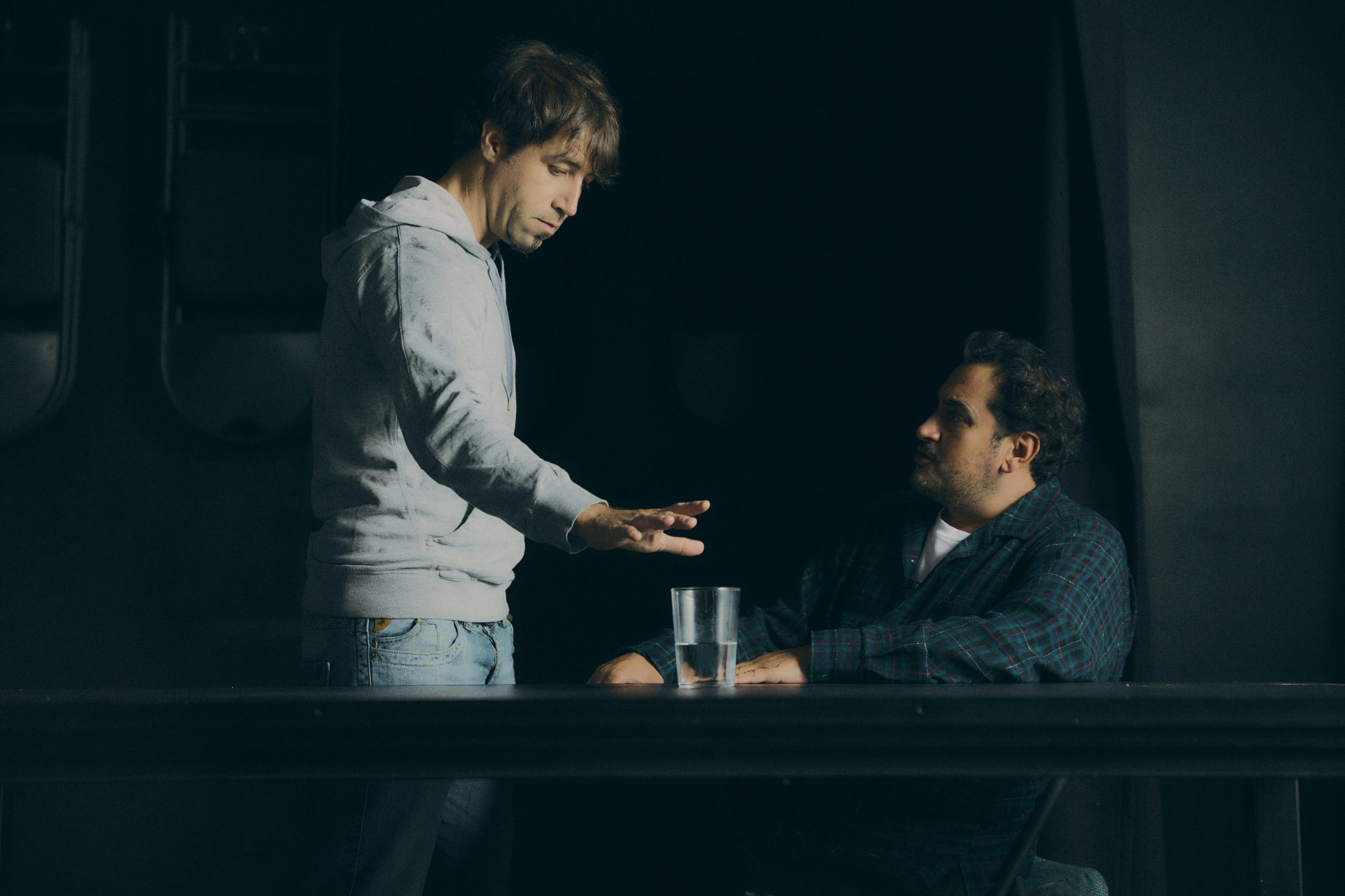 Leo Rivera y el ya citado Gabriel Olivares son los dos artífices de esta creación en cuestiones actorales. Ellos dos solos llevan sobre los hombros el peso de la función y sus interpretaciones no tienen un “pero” posible. Todo está impecable y más en los momentos cómicos en los que el público no puede aguantarse la risa ni por un momento. Siendo esto una de las labores más difíciles que se puede llevar a escena con éxito. Rivera interpreta al joven Simón Prendado, quien busca un hueco en el teatro y conocer gente mientras que Olivares es el veterano director de la compañía que, en un principio, hastiado sufre pero consigue recuperar el amor a este arte con la evolución de su futuro alumno. Cada uno en su rol está perfecto y es de destacar la evolución y el cambio de carácter que tiene que llevar a cabo Rivera en la escena. Para quitarse el sombrero.