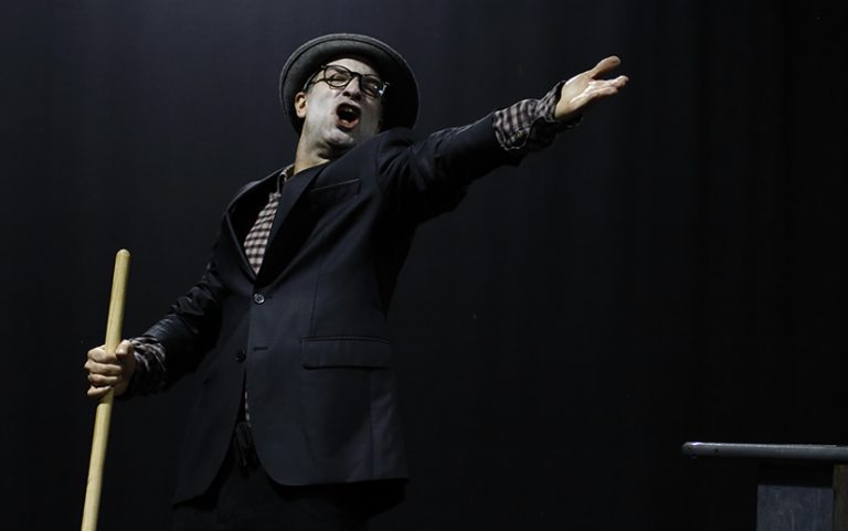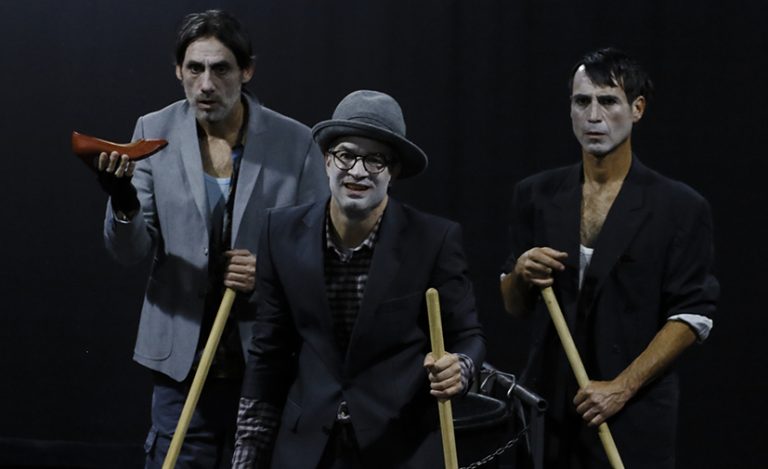Israel Frías, Luis Rallo y Alberto Berzal son un trío que, en su apariencia y mensaje, rinde homenaje a la profesión del barrendero, como el instalado en la plaza de Jacinto Benavente en forma de estatua, pero a la vez a una inmensa mayoría de trabajos invisibles que nos rodean. Sus rostros apayasados, desencajados entre la agonía y la carcajada, dan pie a numerosas ilustraciones cotidianas sobre las que no apartamos la vista gracias a unas magníficas interpretaciones que no dejan nada oculto dentro del paupérrimo paisaje en el que se alojan. La fortuna de esta pieza es verles en escena, arrastrar su desarmonía y disgusto por la vida que llevan, gracias a la que una vez llevaron, y llegar a vislumbrar la claridad del amanecer, quizás, encontrándonos a nosotros mismos en la basura, entre el sonido del papel de aluminio y el cepillo que no arrasa con nada.