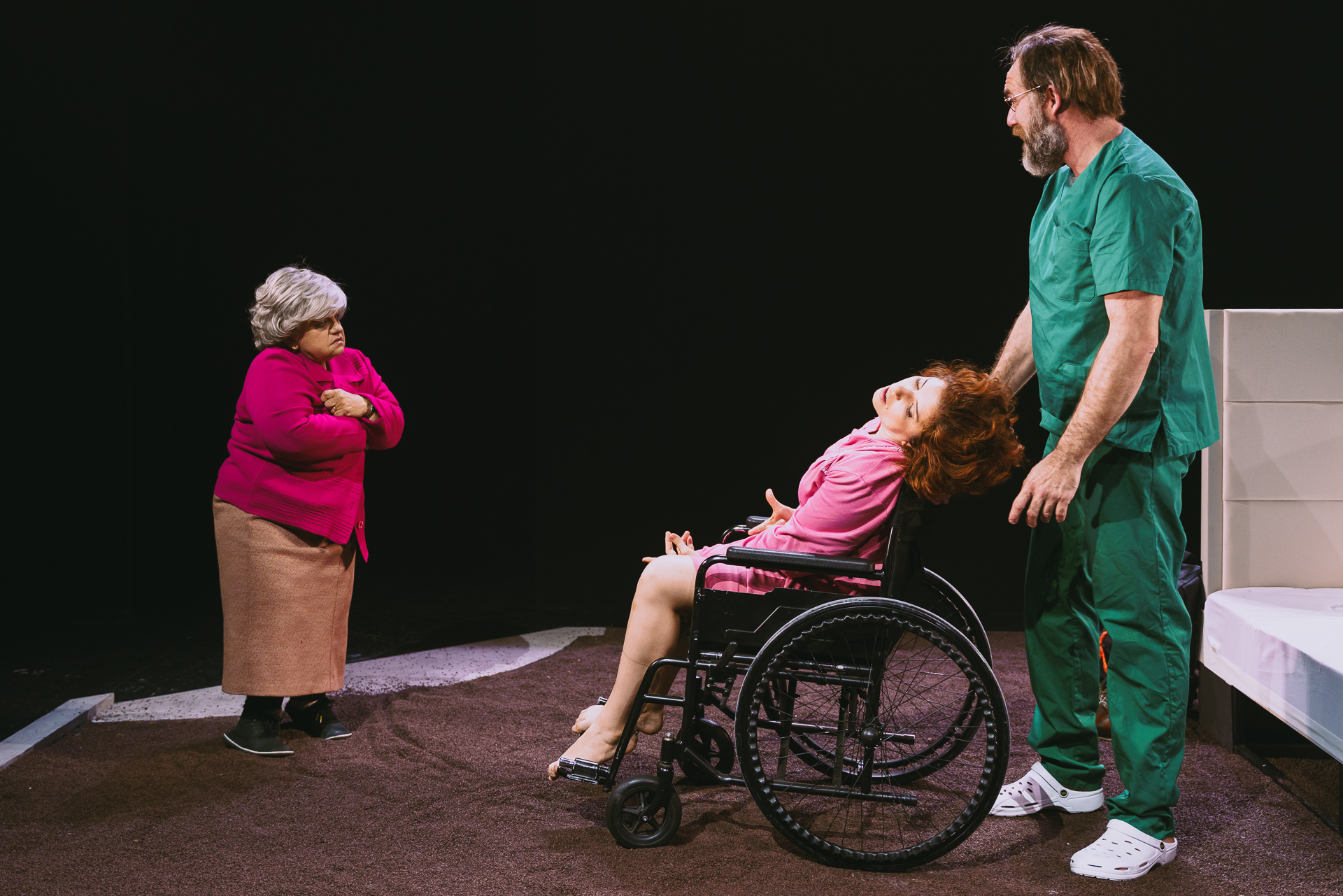 Este texto de Esther F. Carrodeguas, escrito en el marco del programa de Residencias Dramáticas del CDN durante la temporada 2020-2021, se presenta como un juego cómico que nos enfrenta a nuestros propios tabús alrededor del colectivo de discapacitados y discapacitadas. Y no falla. Desde el primer minuto, me sorprendí a mí misma preguntándome si estaba de acuerdo o no con cada escena exhibida, con cada recoveco puesto al descubierto apenas sin pudor. Revuelta en la butaca, es muy difícil no emocionarse o empatizar con las diferentes cuestiones, ya que con discapacidad o sin ella, sintiéndome normal, rara o extraterrestre, hay momentos brindados por José Manuel Blanco, Carlota Gaviño, Emilio Gavira, Natalia Huarte, Jorge Kent, Mónica Lamberti, Anna Marchessi, Marcos Mayo, Inma Nieto e Irene Serrano espinosos de digerir sin reflexión.