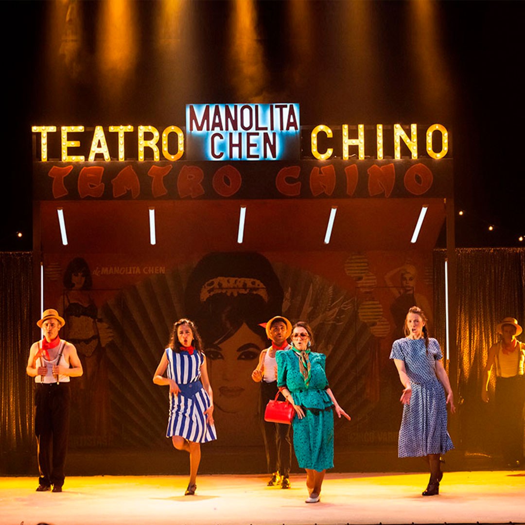 Esta creación, dirigida por el ya citado Troncoso, es una pieza biográfica coral en la que se hace un repaso por la vida y obra de Manolita Chen. Desde sus orígenes, en un cuerpo de baile en el Price, hasta su última faceta como empresaria en hostelería; sin olvidar su historia de amor con Chen Ping. Todo ello contado de manera magistral utilizando el método del recuerdo en el que es la propia protagonista la que se dirige al público y se ve asaltada por todas las memorias que formaron su vida en el espectáculo. Pero, a la vez que vive este hecho, el espectador realiza un viaje a la España de la dictadura y descubre lo dura que era la censura o las rifas con las que hacía, si cabe, más atractivo el fenómeno de los teatros portátiles. Un viaje lleno de luces y de sombras que habla de un trabajo muy bien hecho con una gran labor de investigación atrás que es para quitarse el sombrero.