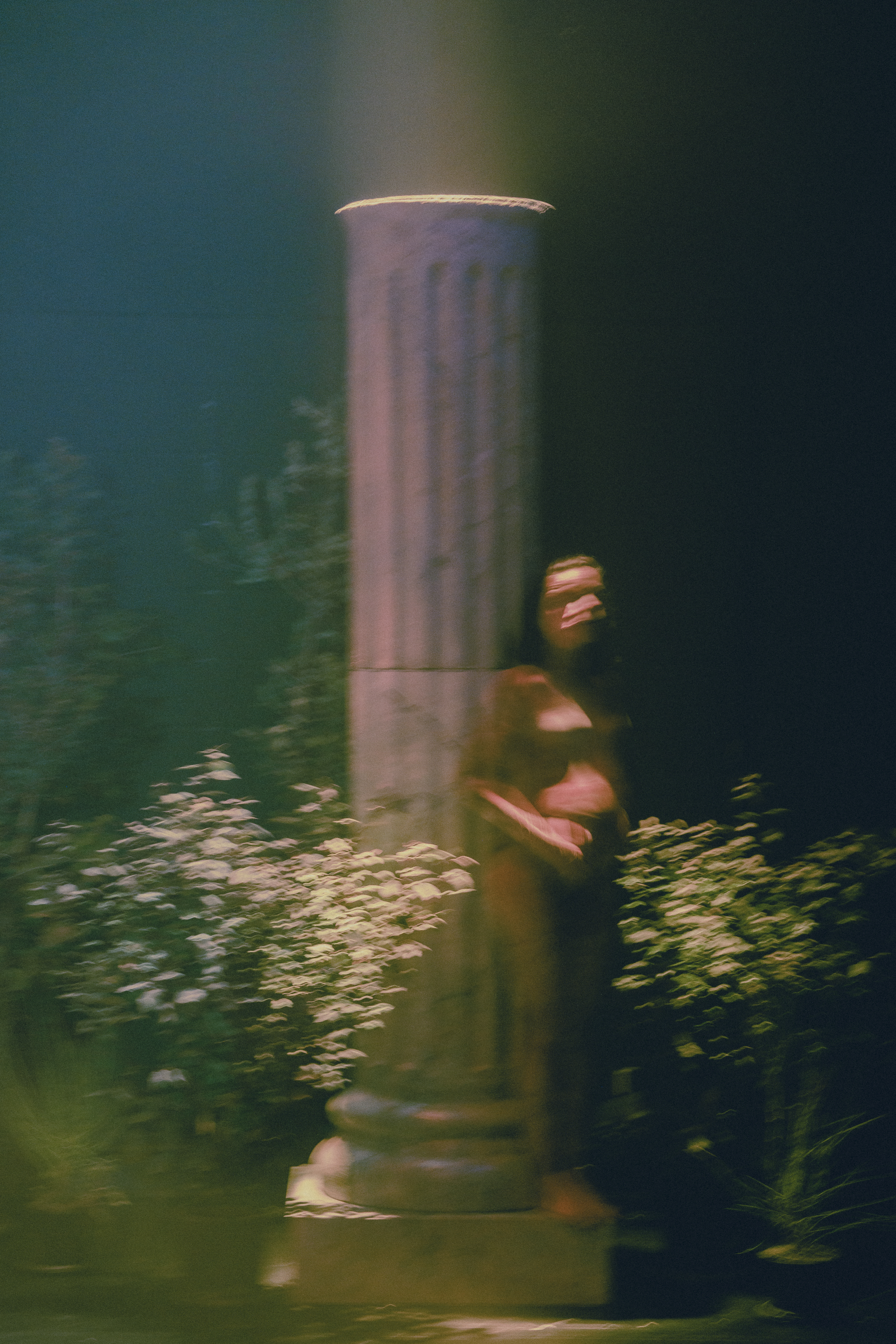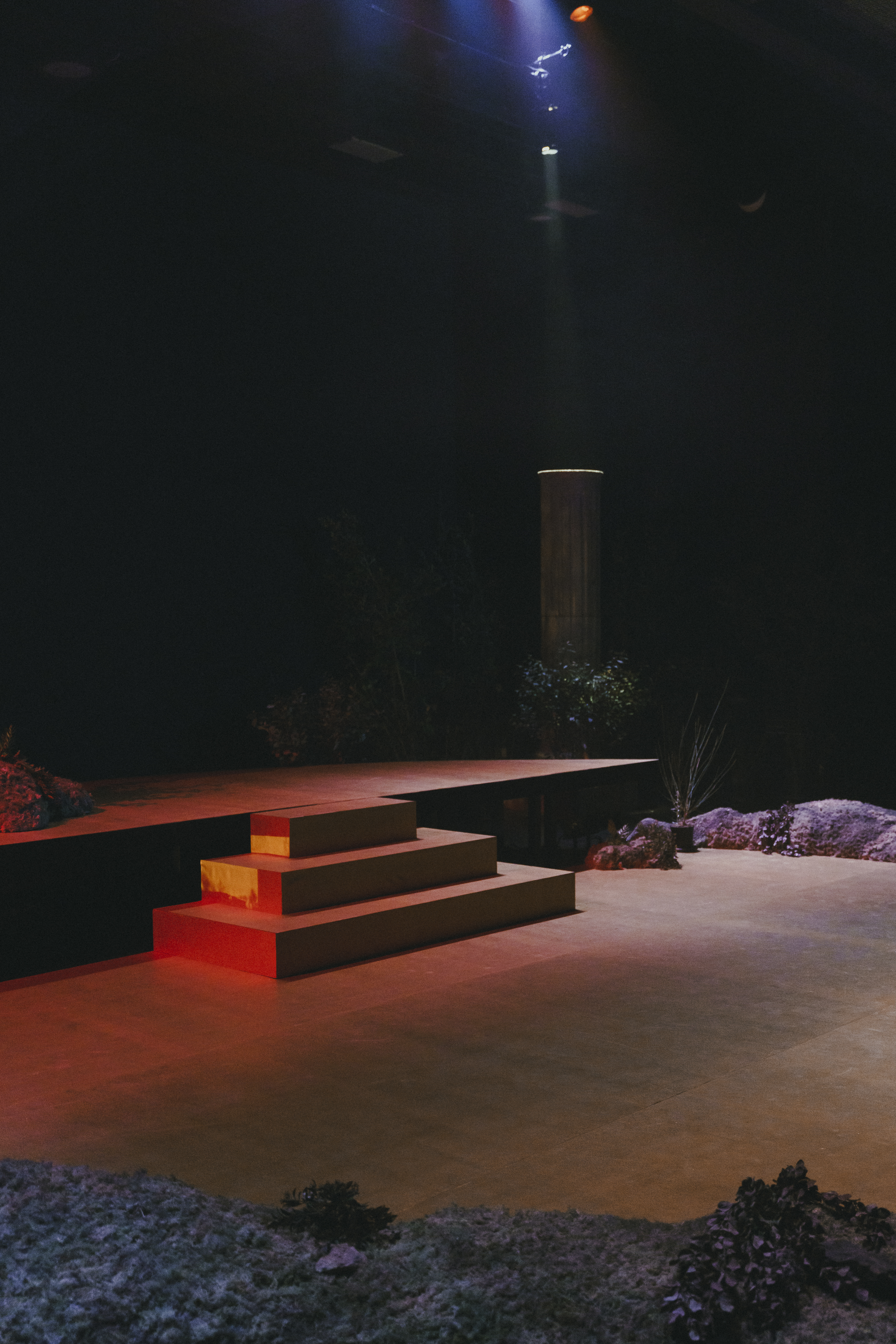 El lugar y el mito es una única pieza, pero fragmentada en 4 movimientos o variaciones del mismo proyecto porque “para mí, el tener que centralizarlo en solo uno, dejaba fuera muchas cosas y era muy difícil darle el lugar y entrar en diálogo verdaderamente con las disciplinas que quería: la composición musical, el espacio sonoro, la iluminación, la fotografía, la videoescena, los cuerpos, el texto y la palabra de manera más desactivada y desarticulada”.