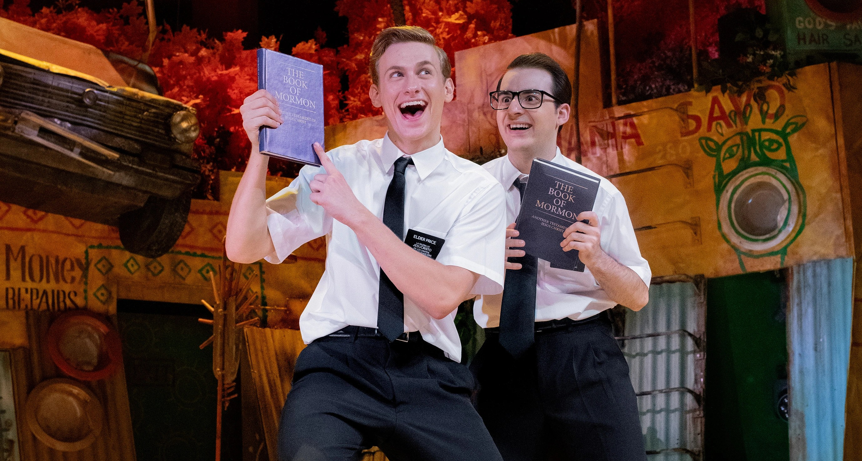 Desde luego la traca final la llevan todo el rato en sus trabajos Jan Buxaderas y Alejandro Mesa. No se les puede quitar los ojos de encima. Primero porque, como dúo de actores, es increíble lo que hacen en el escenario, en sintonía y como figuras que necesitan ser diferentes para crear el efecto mormónico. Seguidamente, en sus números por separado, dan perfectamente fe de su fuerza escénica y hacen verdaderas cabriolas a nivel de voz, cuerpo e interpretación.